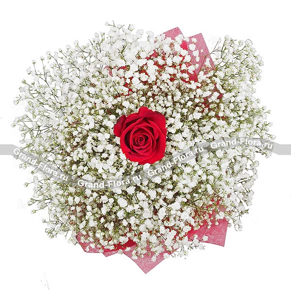 Стандартный (на фото): роза красная - 1 шт, гипсофила - 7 шт, фетр розовый.