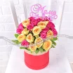 Любимой маме - шляпная коробка с розовыми и кремовыми кустовыми розами